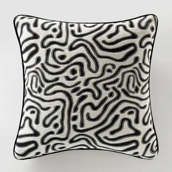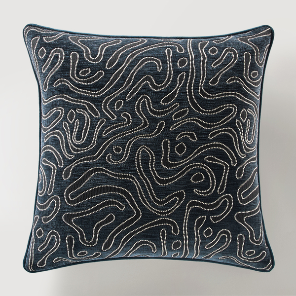 Bring artistic elegance to your space with our Abelia Pillow in navy and black. Intricate stitch embroidery creates a sophisticated botanical pattern that transforms this accent piece into a textile artwork. The timeless ivory ground provides the perfect canvas for the intricate black embroidery work, creating a versatile accent that bridges both contemporary and classic décor styles.Z Gallerie ExclusiveDETAILS AND DIMENSIONSFront/Back: 100% PolyesterNavy/Black22" X 22"Stitch Embroidery DetailRemovable Insert: 95% feather / 5% down (included)Imported OTHER INFOSpot clean