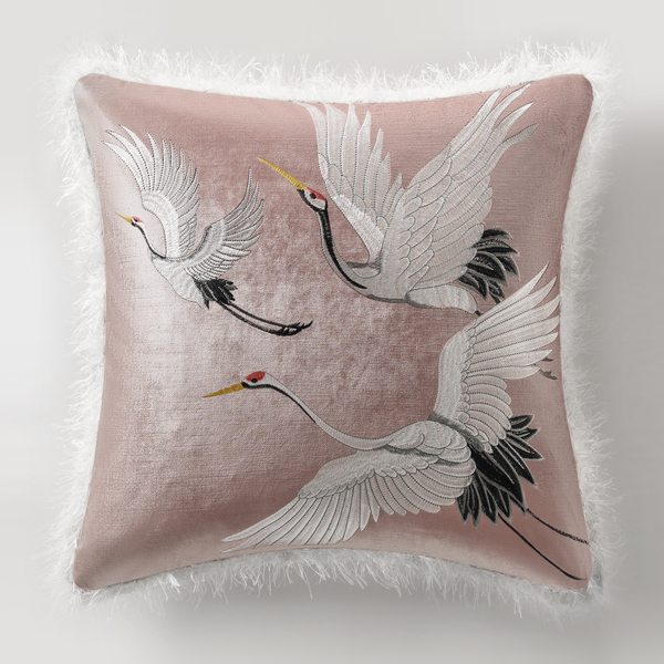 Create an artistic focal point with our Crane Embroidered Pillow. Delicate crane motifs are expertly embroidered on luxurious dusty rose velvet, while playful eyelash fringe adds whimsical movementZ Gallerie ExclusiveDETAILS AND DIMENSIONSVelvetFront/Back: 100% PolyesterDusty Rose20" X 20"Embroidered Design Eyelash FringeRemovable Insert: 95% feather / 5% down (included)Imported OTHER INFOSpot clean