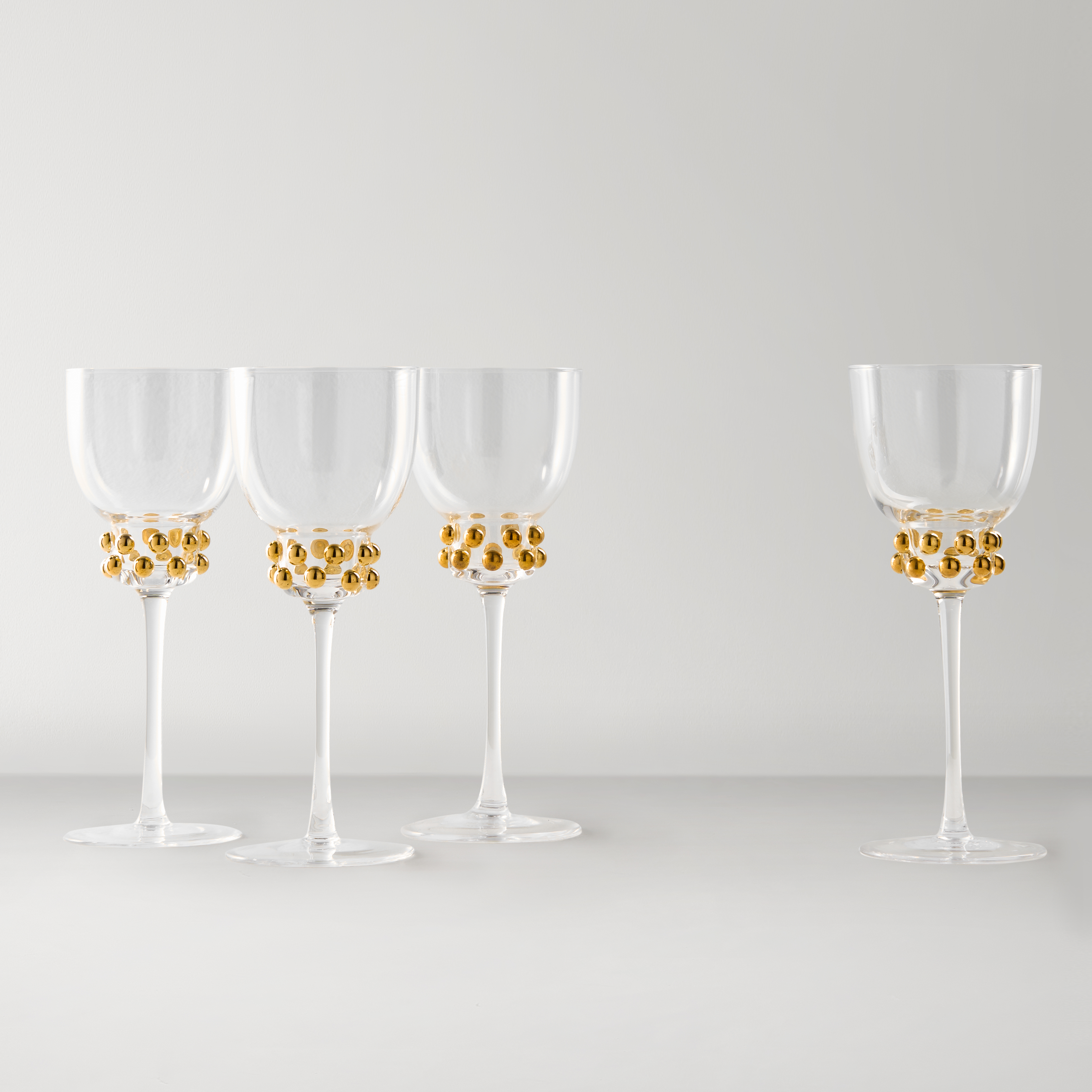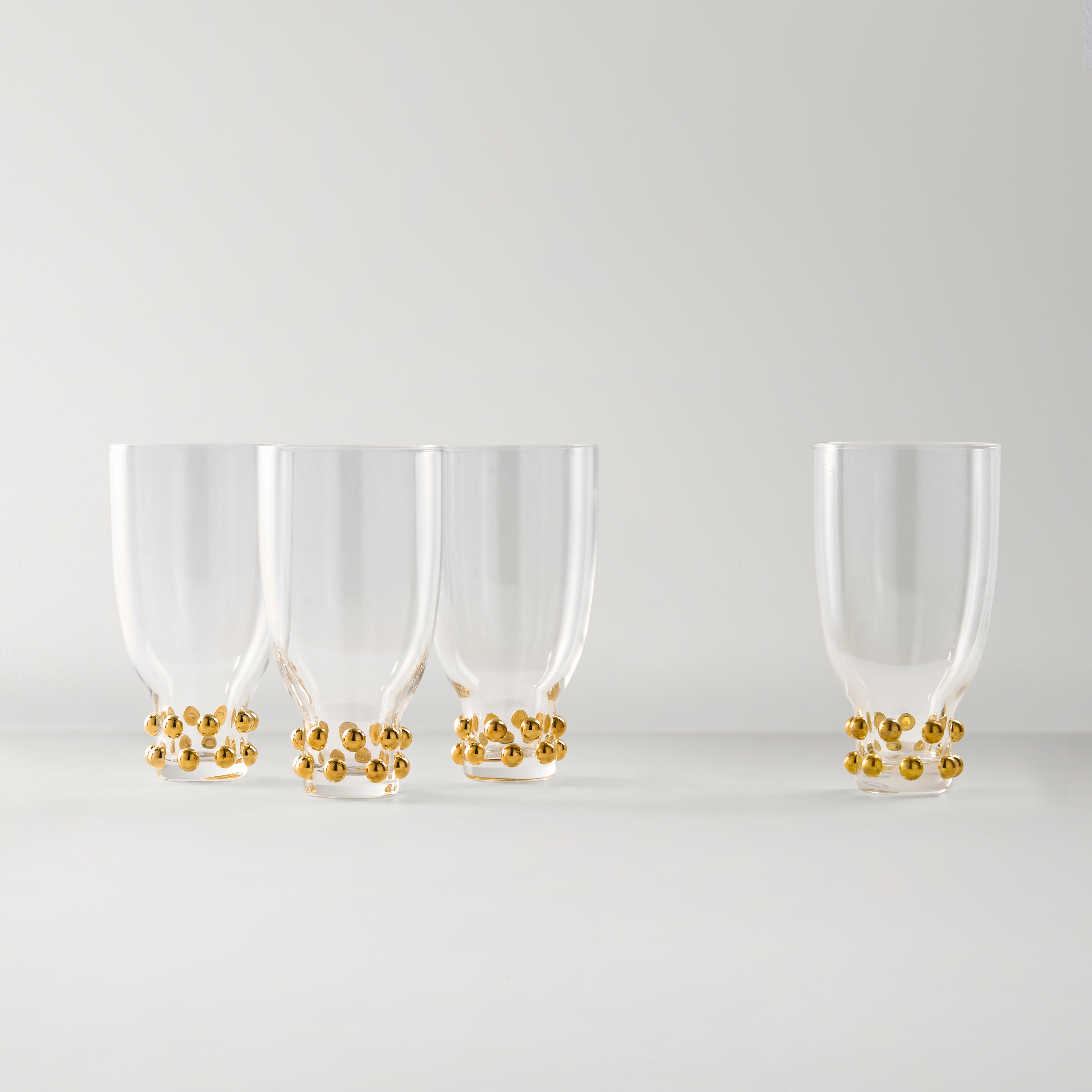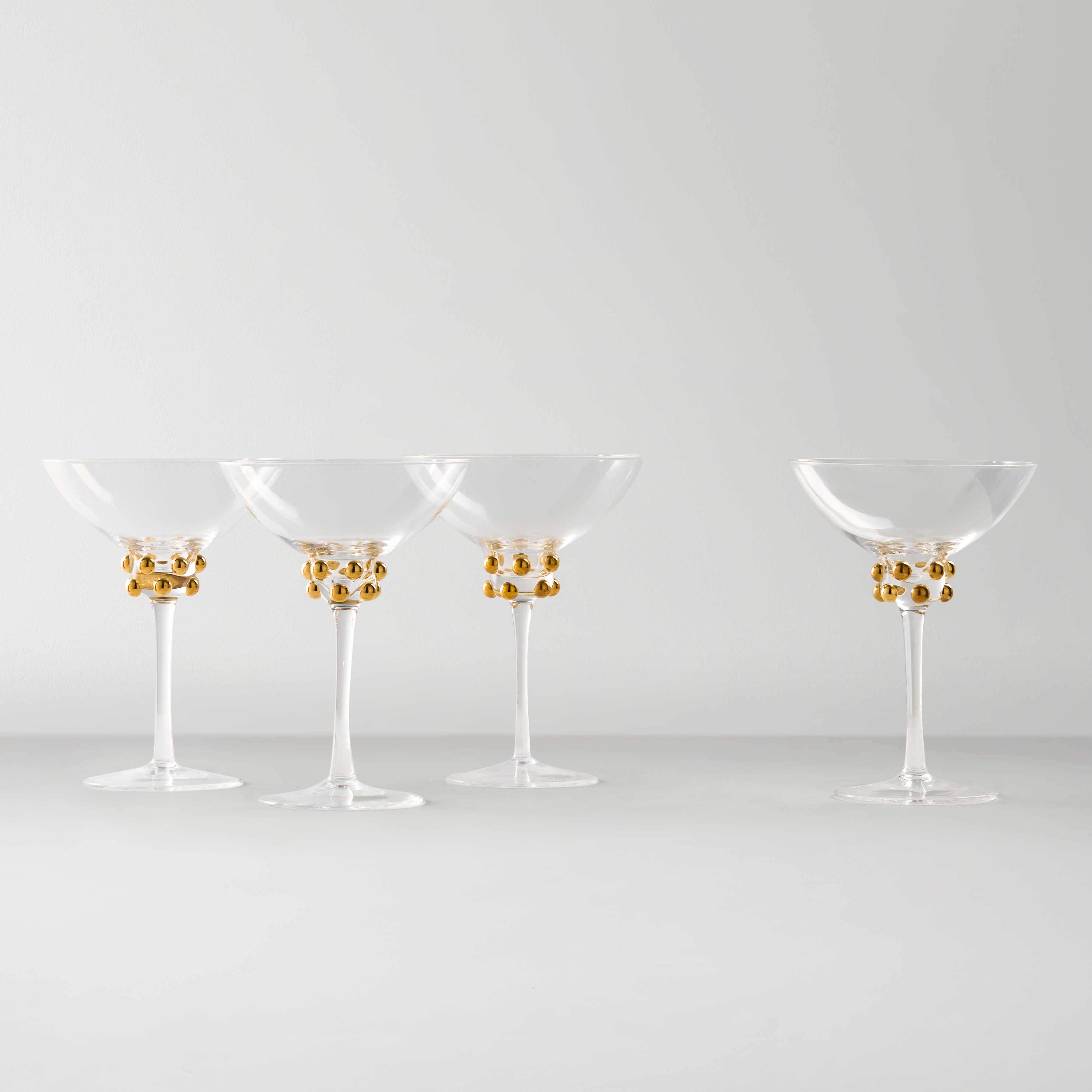 The Jolie Glassware Colletion offers a seamless blend of elegance and versatility. Gold bead accents add a glamorous touch, while the refined shape suits any wine variety or cocktails. Ideal for soirées or quiet evenings, these glasses bring effortless style to every sip.DETAILS AND DIMENSIONSGoldJolie Double Old-Fashioned - S/4: 3.3" Diameter x 3.9"H, 9.8 ozJolie Flute - S/4: 2.2" Diameter x 9.3"H, 6.3 ozJolie Wine Glass - S/4: 3.3" Diameter x 8.3"H, 10.8 ozJolie Tumbler - S/4: 3" Diameter x 5.5"H, 12.7 ozJolie Martini Glass - S/4: 4.8" Diameter x 6.4"H, 8.8 ozSold in sets of 4ImportedOTHER INFOHand wash only