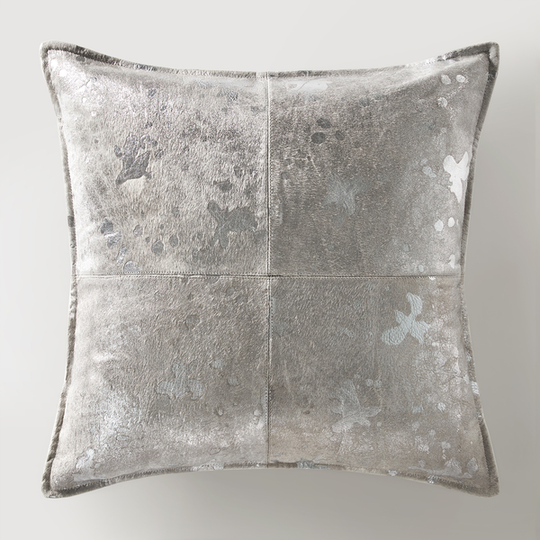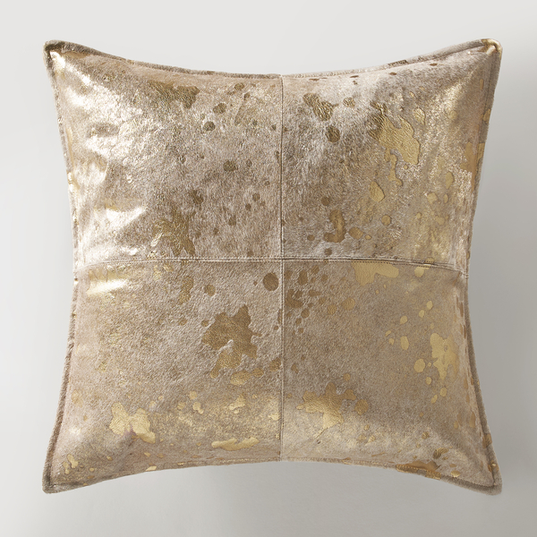 Transform your space with our Metallic Hide Pillow in luminous gold. This luxe accent piece combines the organic beauty of genuine hide with a rich metallic finish, creating an opulent statement of natural elegance.Z Gallerie ExclusiveDETAILS AND DIMENSIONSFront: 100% Pieced HideBack: 100% PolyesterMetallic Gold20" X 20"Removable Insert: 95% feather / 5% down (included)Imported OTHER INFOSpot cleanMetallic foil may flake slightly. Handle with care.