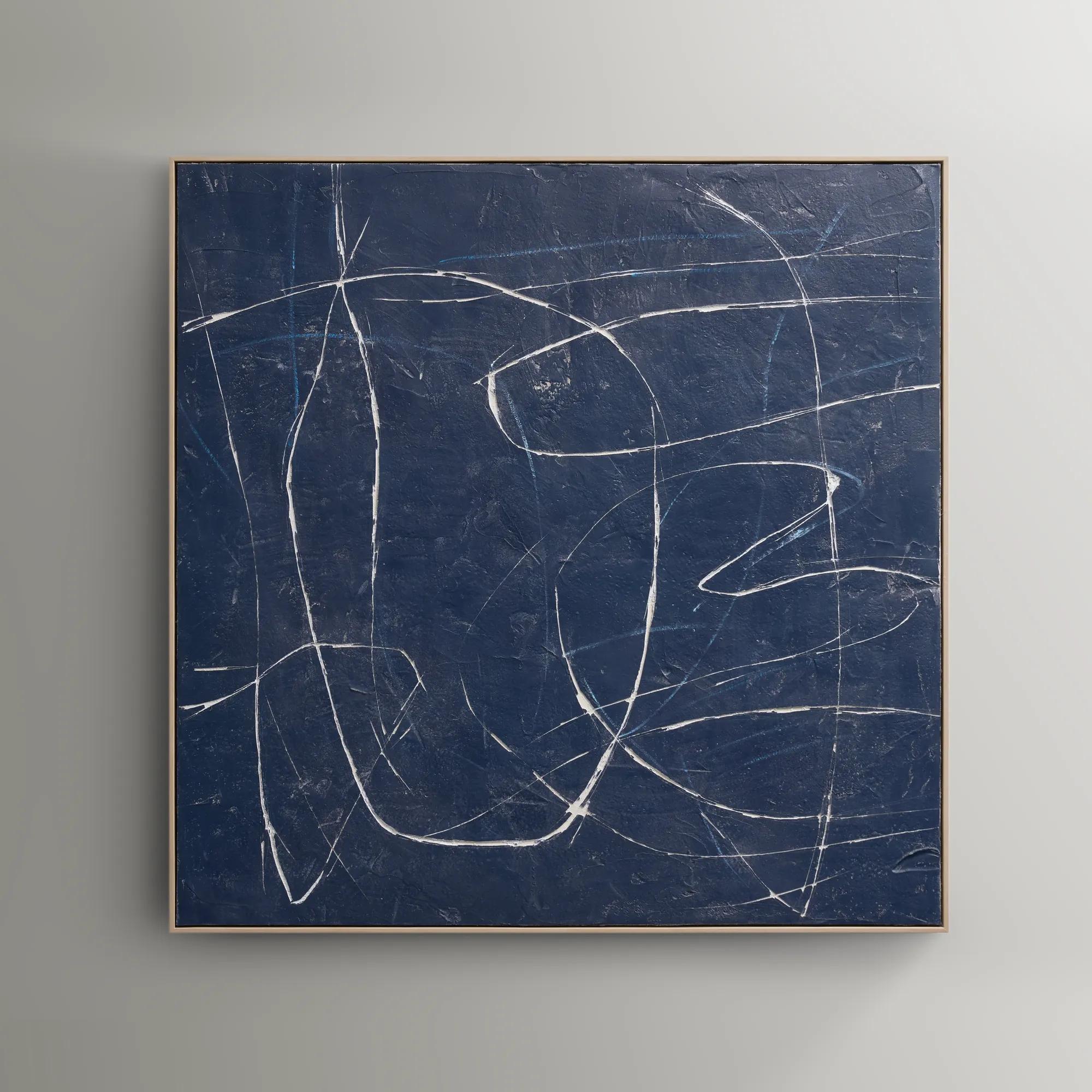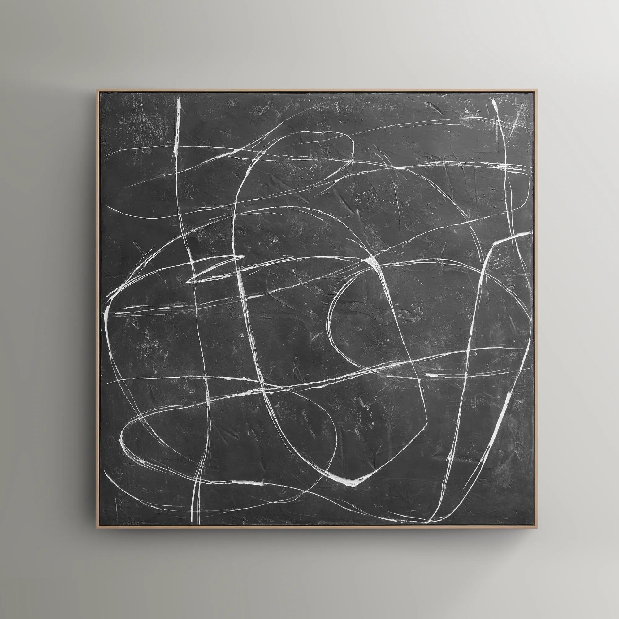 Almost Midnight Painting in black explores dramatic contrasts with a rich black backdrop and intricate white linework. The interplay of shadow and texture creates a sophisticated, eye-catching piece. Set within a sleek light wood finish floater frame, this artwork exudes timeless appeal.DETAILS AND DIMENSIONSHand-painted canvas set in a light wood finish floater frame.Black47.2"W x 1.8"D x 47.2"HImported