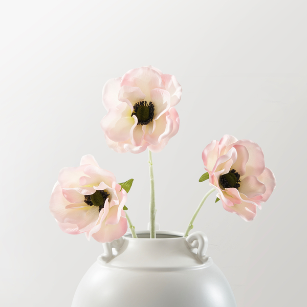 Add a romantic touch to your decor with these blush-hued Anemone stems. Their soft tones and realistic design bring timeless beauty to any arrangement.DETAILS AND DIMENSIONSFaux - PolysterBlushSet of 321"HImported