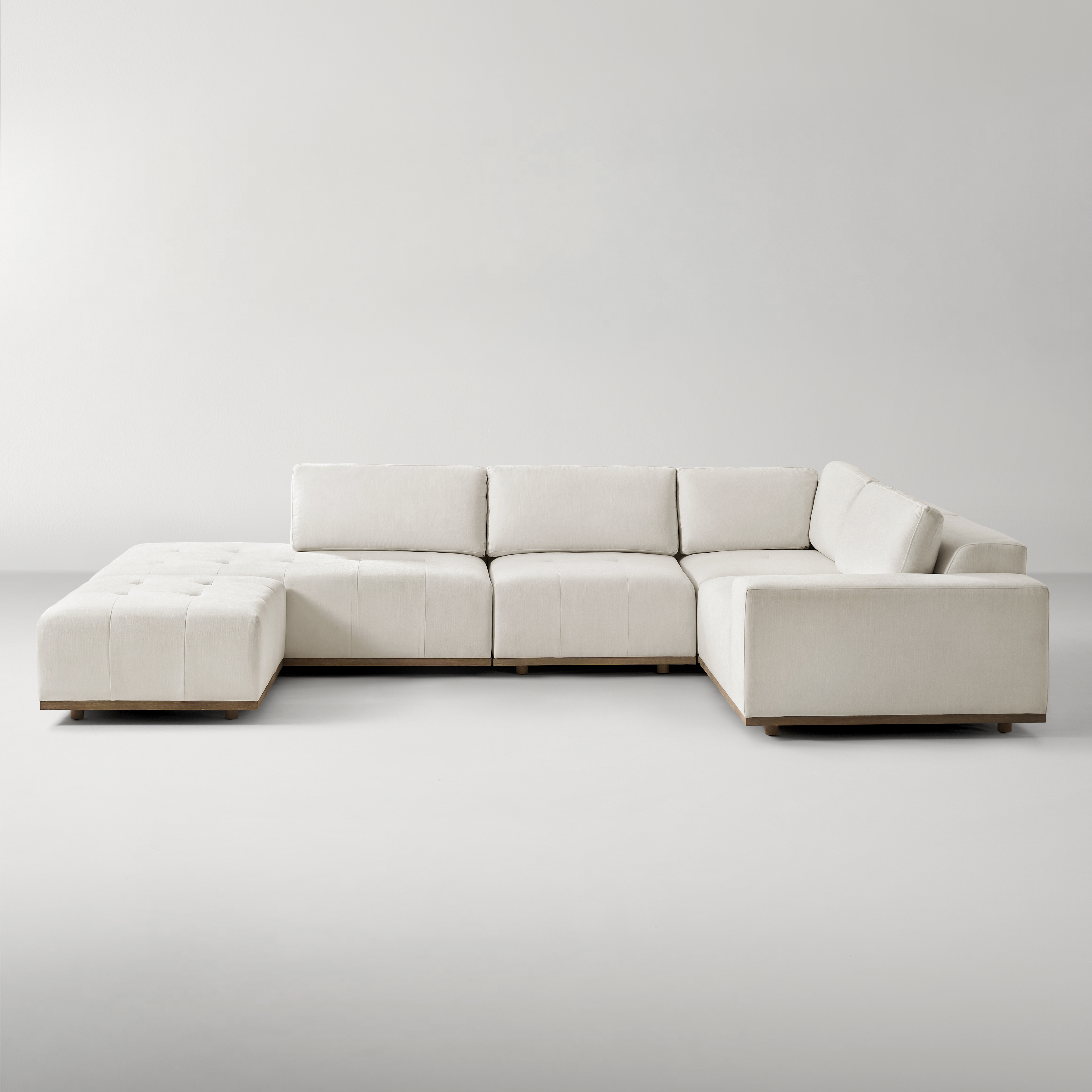 The Carlos Sectional is a testament to exceptional craftsmanship. Upholstered in a luxurious fabric and meticulously constructed with a kiln-dried rubberwood frame, this sectional exudes a sense of refined elegance. The hand-tufted details add a touch of artisanal artistry, while the high-density foam ensures enduring comfort and support. The Carlos Sectional is a statement piece that will transform your living space into a haven of relaxation and style.ZG ExclusiveDETAILSHigh density foam, Kiln-dried Rubberwood base frameVarious fabric optionsFrame Material: Plywood frame, solid rubberwod base frameFabric Content/Toss Pillow Upholstery Material: Linen 95% polyester, 5% RayonUpholstery Inside Content: 20% Duck Feather, 80% High Density FormToss Pillow Fill Material: 100% Duck FeatherLeg Color: Natural GreyHand tufted detailsHand-upholstered by skilled crafts peopleSold separatelyImportedDIMENSIONSOverall Dimensions4 PC Sectional: 112.5"W × 100.75"D × 30"H5 PC Sectional: 131.75"W × 81.5"D × 30"HInside Seat4 PC Sectional: 113.5" "W × 50"D × 17"H5 PC Sectional: 113.5"W × 70"D × 17"HBack Height to SeatWith Cushion: 12''HWithout Cushion: 9''HArmrest HeightHeight: 20.5''HSingle Armrest WidthWidth:10.25"WLeg HeightHeight: 2.5"HOTHER INFOFor indoor use onlyKeep dryTo prevent fading, keep fabric out of direct sunlightUsable with or without back cushion to fit overall home style