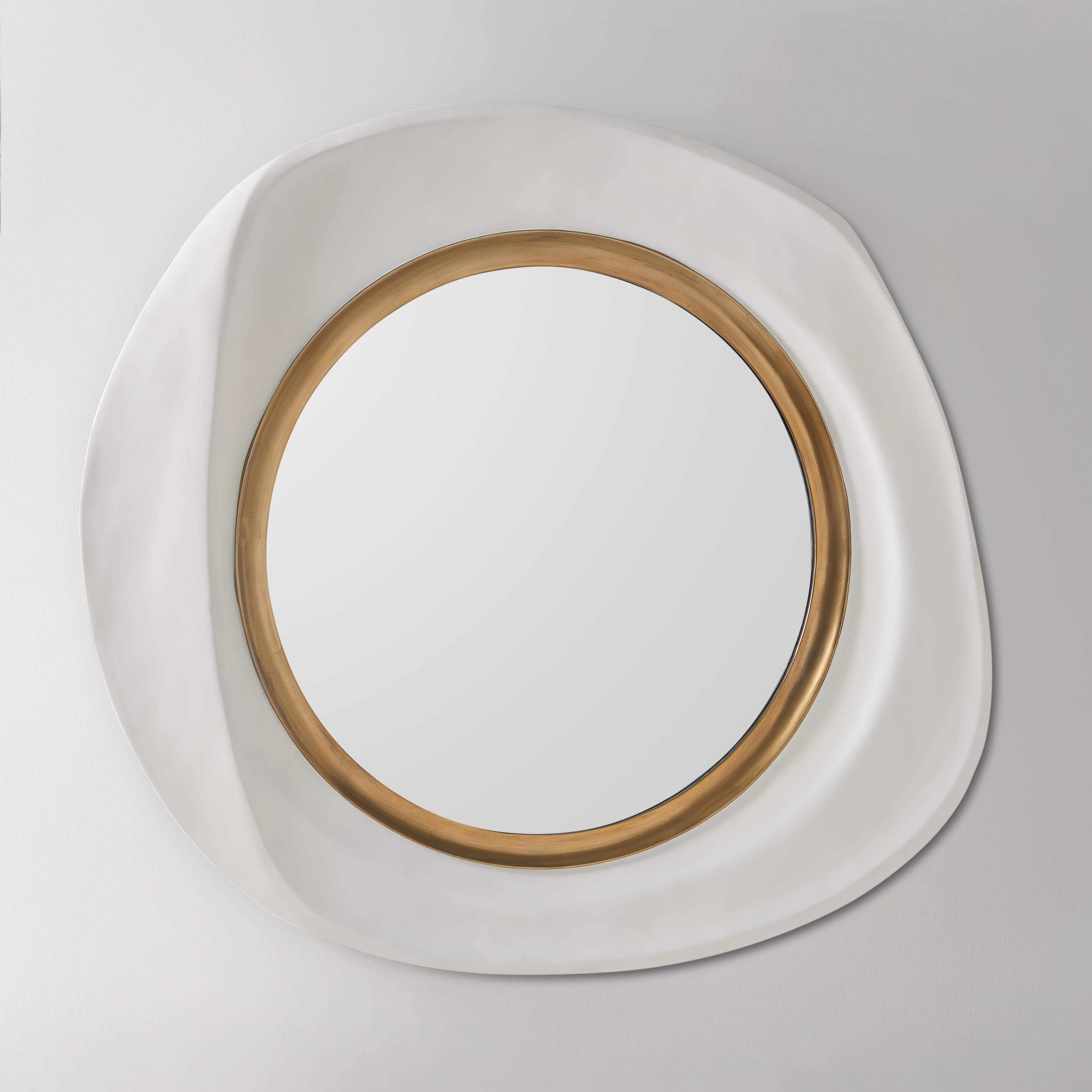 The Celine Wall Mirror redefines elegance with its curvaceous white-and-gold frame. Perfect above a console or as part of a gallery wall, it effortlessly merges classic glamour with contemporary appeal, enhancing any room’s aesthetic.DETAILS AND DIMENSIONSGlass/Iron/Resin/MDFWhite/Gold46.5"W x 2"D x 38.5"HImported