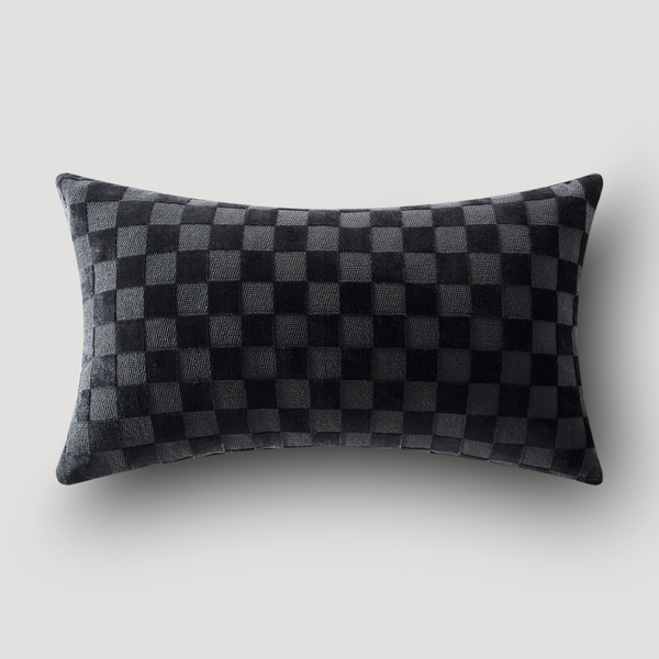 Our Checker Velvet Lumbar Pillow combines style and support in a versatile rectangular design. The cut velvet pattern creates a sophisticated geometric surface that adds subtle texture and visual interest. This pillow's rich black dimensional checkerboard design enhances seating while providing perfect lumbar support for chairs, benches, or beds.Z Gallerie ExclusiveDETAILS AND DIMENSIONSCut Velvet in checker pattern100% PolyesterBlack22" X 12"95% feather / 5% down (included but not removable)Imported OTHER INFOSpot clean
