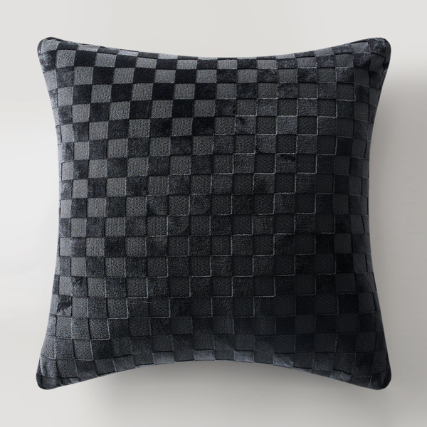 Classic meets contemporary in our Checker Velvet Pillow. The cut velvet pattern creates a sophisticated geometric surface that adds subtle texture and visual interest to any space. This pillow's rich black dimensional checkerboard design catches light from every angle, bringing refined depth to both modern and traditional settings.Z Gallerie ExclusiveDETAILS AND DIMENSIONSCut Velvet in checker pattern100% PolyesterBlack22" X 22"95% feather / 5% down (included but not removable)Imported OTHER INFOSpot clean