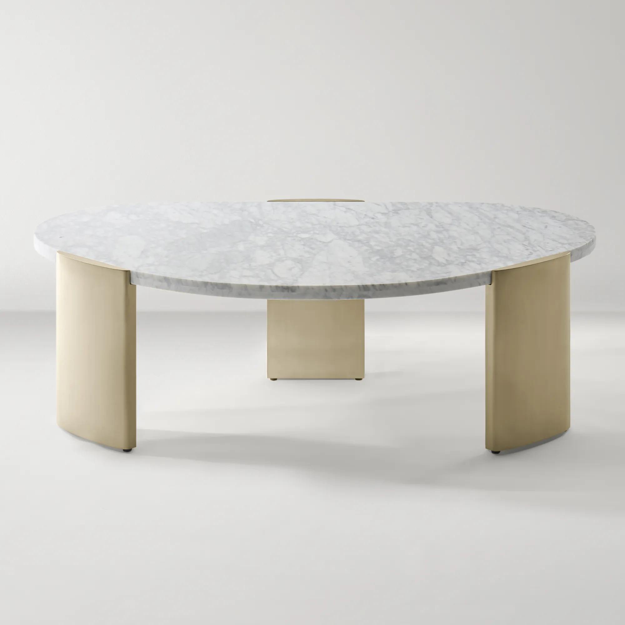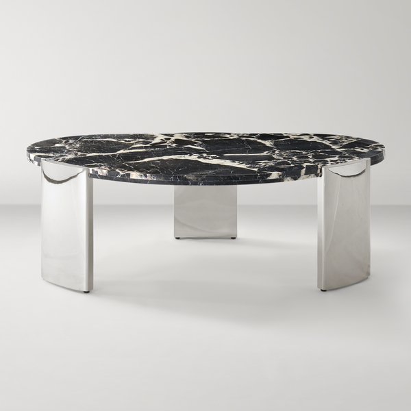 Make a bold statement with the Flare Coffee Table in Black. Its organic, crescent-shaped Bvlgari black marble top brings dramatic elegance to your space, while the polished stainless steel base offers a modern sculptural touch. Perfect for entertaining or as a focal point, this piece transforms any living room into a luxurious retreat.ZG ExclusiveDETAILS AND DIMENSIONSThe natural tones and veining give the rich marble top a strikingly sophisticated look.Legs with anti finger print finish (Easy to remove finger prints)Perfectly fit with 3 seat sofa or sectionalNatural bulgary black marble top & Shelf, polished stainless steel baseColour: BlackMarble with dramatic veining, so each piece is one of a kindFrame Material: Stainless steel51"W x 32.5"D x 16"HSold separatelyImportedOTHER INFOFor indoor use onlyMarble is porous and can stain, particularly with dark liquids. Wipe spills immediately.Keep dryTo prevent oxygenization, please don't place this product in high moisture space or wet floor.Easy assembly within 30 minutes