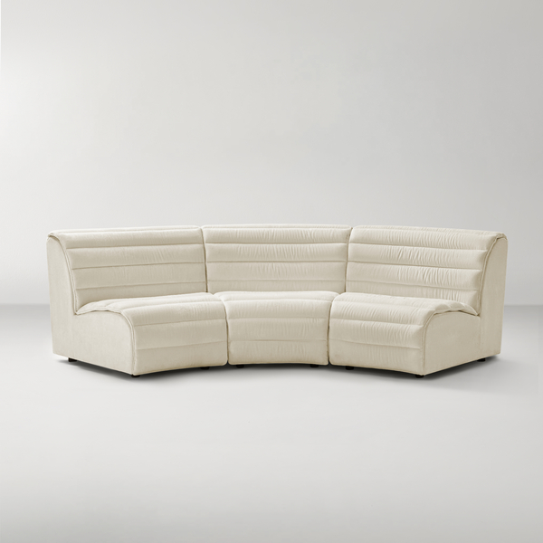 Revolutionize your living space with the Jacqlyn Modular Sectional. Crafted from elegantly curved wedge-shaped pieces, this collection offers endless configuration possibilities to suit your style and space. Upholstered in sophisticated boucle fabric with stationary high-density foam cushions and quilted detailing, each piece exudes luxurious comfort and artistry. Available in ivory or grey, the Jacqlyn Collection is the ultimate statement in versatile, modern seating.ZG ExclusiveDETAILS AND DIMENSIONSColour: IvoryGreat conversation sectional setStationary cushion with extra layer, Quilte seam featured on seat and backrestMade your own to fit with both grand living space and apartments.High density foamquilte seam featured seat cushion and backrestStationary cushion, with extra layer featuredFrame Material: PlywoodFabric Content: Boucle 100%PolyesterFabric Function: C0 performanced fabircUpholstery Inside Content: 90% Foam, 10% Polyester117"W x 50.5"D x 33"HSold separatelyImportedOTHER INFOFor indoor use onlyBlot spills immediately with a clean, colorfast towel.Spot clean with a damp cloth or sponge, gently blotting to remove excess water, then air dry.For stains that can't be removed as such, professional cleaning is advised.Keep dryTo prevent fading, keep fabric out of direct sunlight.Arrived fully assembled.Delivered via White Glove Service, this piece will be brought to your home, fully assembled and all packaging will be removed