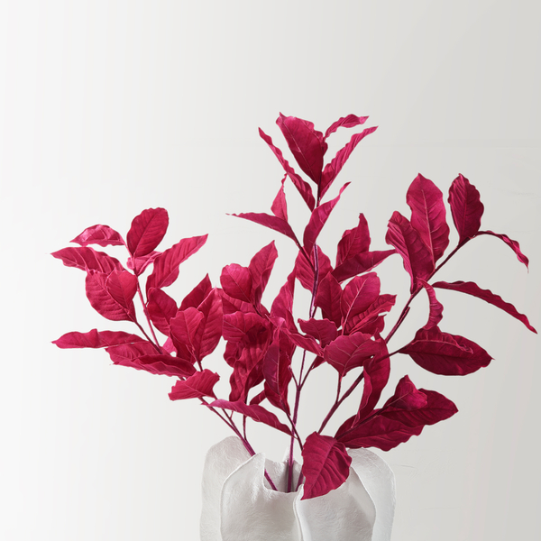 Create striking visual impact with these oversized berry-toned Magnolia leaves. Their vibrant hue and refined silhouette add a dramatic flair to your decor.DETAILS AND DIMENSIONSFaux - PolysterVibrant BerrySet of 359"HImported
