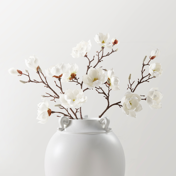 Capture the serene beauty of spring with these Magnolia White stems. Featuring lifelike cream blooms, this set of three brings an enduring elegance to any arrangement or display.DETAILS AND DIMENSIONSWhiteSet of 3Faux - Polyster40"HImported