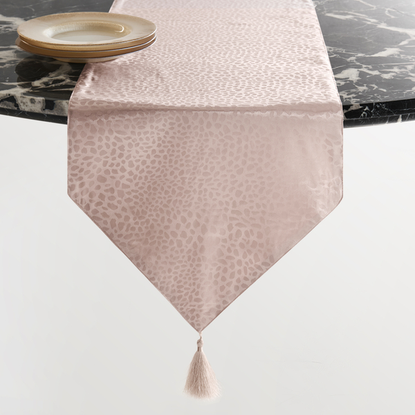 Transform your table with the subtle elegance of our Spotted Tassel Runner. Delicate tonal dots dance across a soft mauve background, creating gentle visual texture that elevates any tablescape. Playful tassels add movement to each end, while the generous 86-inch length provides dramatic presence. Perfect for both everyday dining and special occasions.Z Gallerie ExclusiveDETAILS AND DIMENSIONS100% PolyesterPale Mauve14"W x 86"LTonal dot patternTassel DetailImported OTHER INFOCold Machine WashGentle CycleDo Not BleachDo Not Tumble Dry