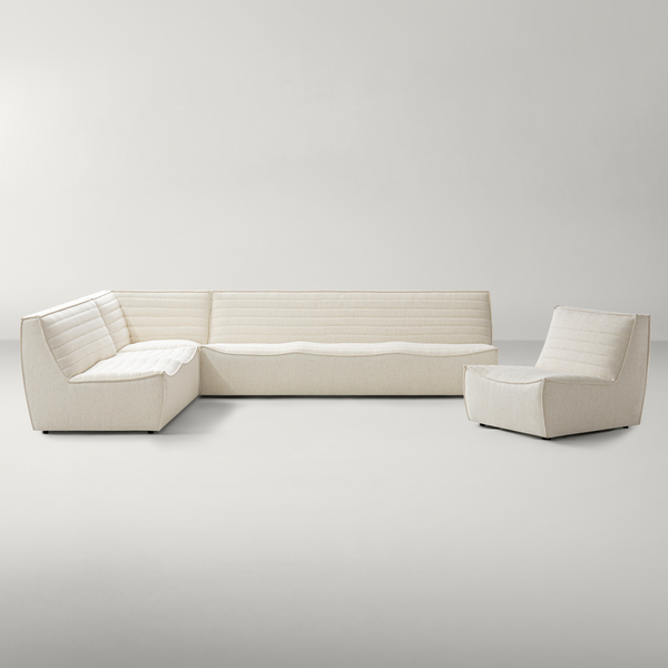 The Valletta Sectional combines sleek design with inviting comfort. Upholstered in a luxurious fabric, it features clean lines, high-density foam cushions for a subtle industrial edge. Perfect for relaxing or entertaining, this sectional adds a sophisticated statement to your living space. ZG Exclusive DETAILS AND DIMENSIONS Curved backrest and seat cushion provides better sense of wrapping.Medium level softness with better support.Flexible layout to fit different space sizeHigh density foamColour: Beigequilte seam featured seat cushion and backrestOne piece stationary cushionFrame Material: PlywoodFabric Content: Linen 100% polyesterUpholstery Inside Content: 90% Foam, 10% PolyesterOverall Dimensions(Excluding Armless Chair): 126.25"W × 96.75"D × 29.5"HSold separatelyImported OTHER INFO For indoor use only Blot spills immediately with a clean, colorfast towel. Spot clean with a damp cloth or sponge, gently blotting to remove excess water, then air dry. For stains that can't be removed as such, professional cleaning is advised. Keep dry To prevent fading, keep fabric out of direct sunlight. Arrived fully assembled. Delivered via White Glove Service, this piece will be brought to your home, fully assembled and all packaging will be removed Pillow excluded but fit with any Z Gallerie pillows