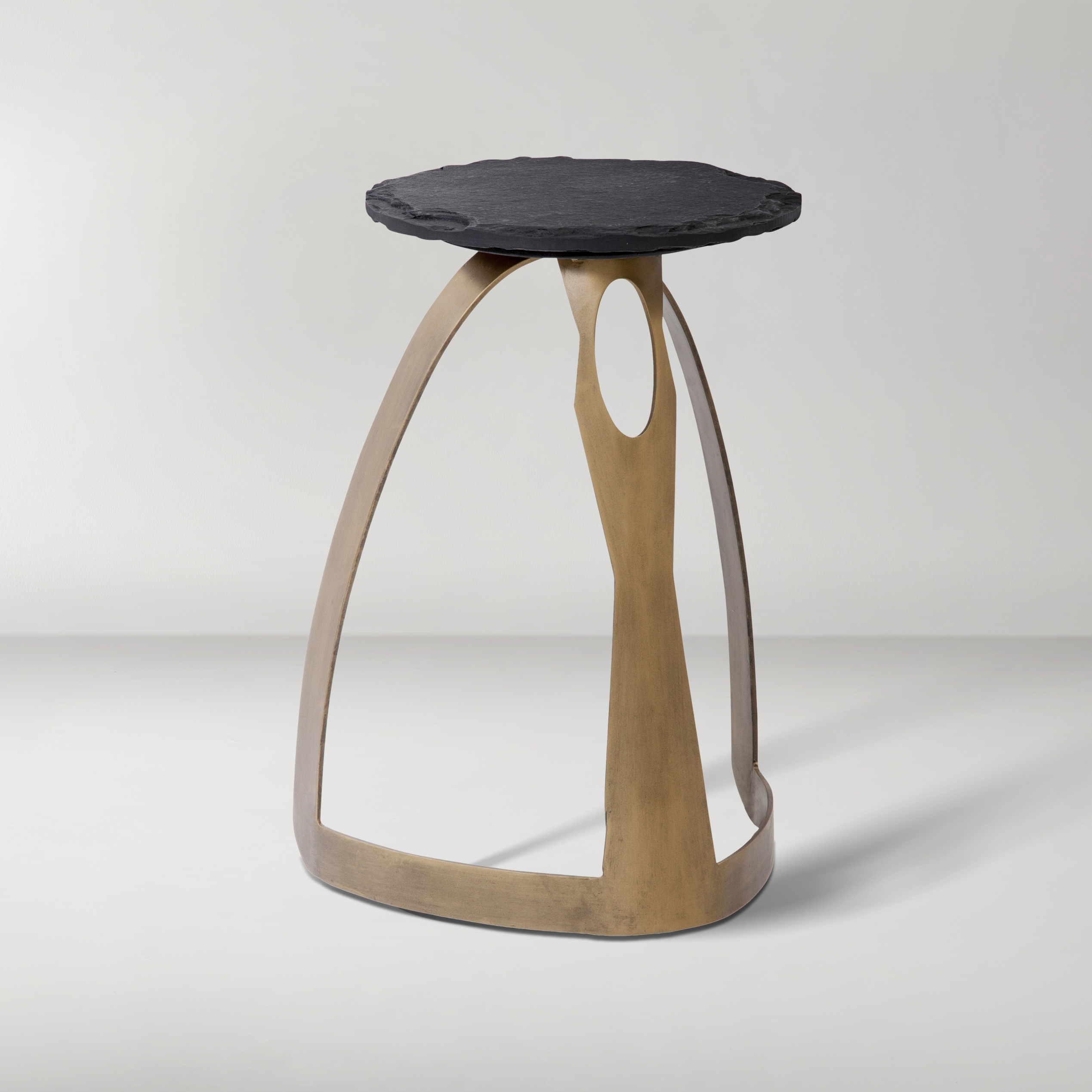 The Vaughan Accent Table redefines artistic sophistication. Its organic slate top showcases the raw beauty of natural materials, while the sculptural iron base in a warm brass finish adds an elevated elegance. A true statement piece, it transforms any space into a gallery-worthy setting.DETAILS AND DIMENSIONSSolid Iron, SlateColour: BrassFrame Material: MetalSandblasted black slate top with natural edgesArchitectural inspired solid iron base in an antique brass finish16''W x 14''D x 24''HSold separatelyImportedOTHER INFOFor indoor use onlyKeep dryTo prevent fading, keep fabric out of direct sunlight